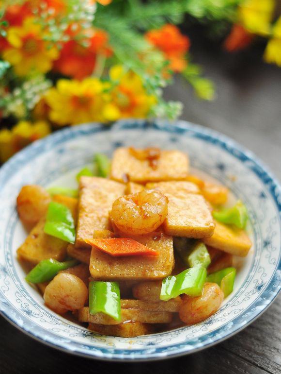 虾仁炒千叶豆腐