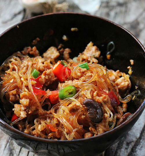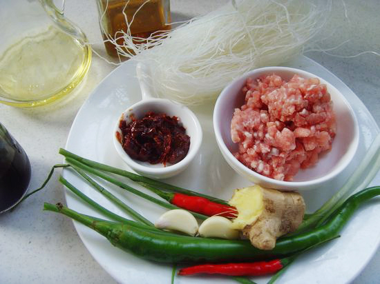 辅料:猪肉馅50克、葱、姜、蒜、青红辣椒