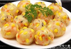 1、将芹菜剁成末,胡萝卜和泡软的香菇切小丁;2、土豆蒸熟去皮挤压成泥状,加入玉米淀粉,少许盐和糖、鸡精,抓捏均匀;3、加入胡萝卜、...