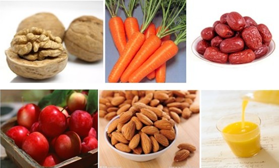 【健康美食】排毒清肠肌肤健康每一天!1、苹果,抗氧化高手;2、胡萝卜,补充皮肤营养;3、核桃,带壳生吃,提升脑活力;4、杏仁,每天20-25颗利于长寿;5、果蔬...