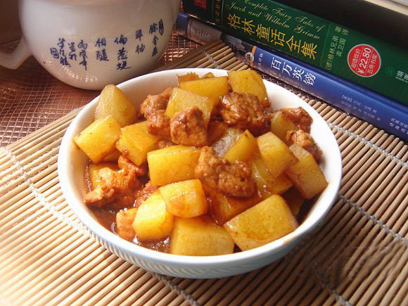 土豆烧肉,非常家常的一道菜品,土豆软面的口感,非常的舒适。1.土豆去皮切丁,瘦肉切丁2.起油锅,下肉丁。3.滑散炒熟4.放老抽提味提色5.下土豆丁6.加盐炒...查看更多>>